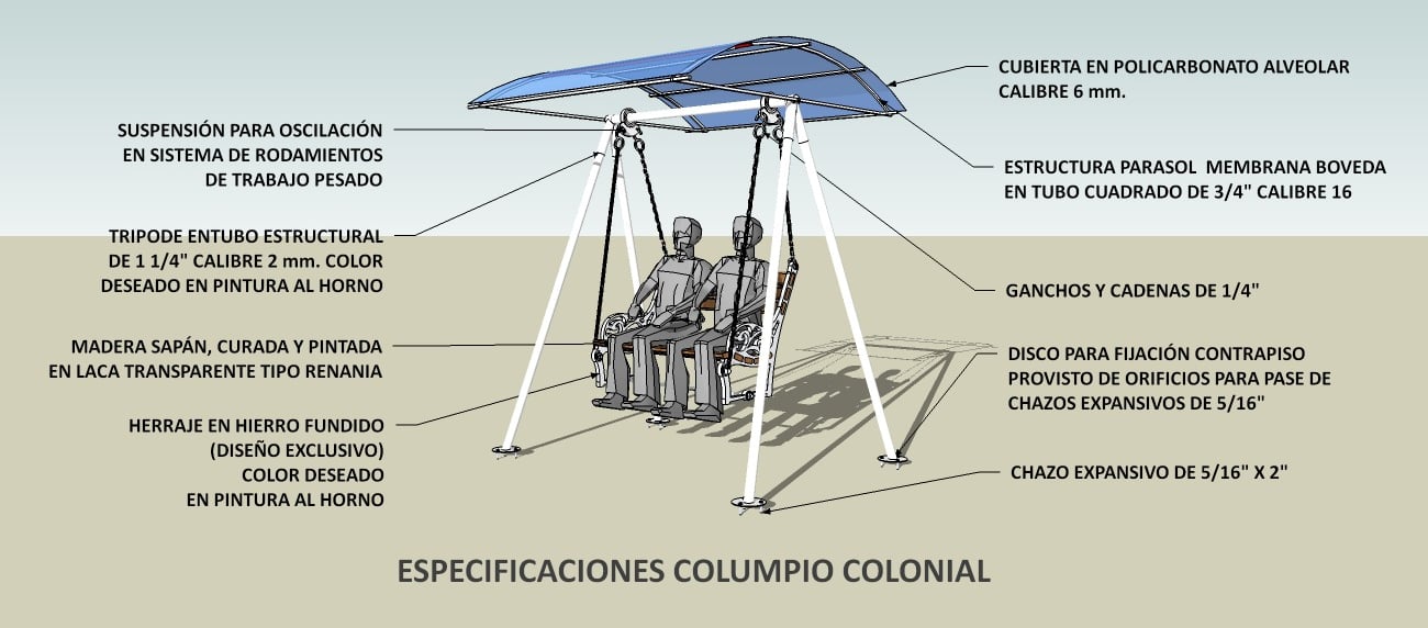 Diseñados con materiales de alta resistencia y acabados artesanales, nuestros columpios coloniales combinan elegancia, funcionalidad y confort.